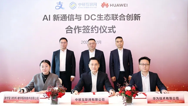 China Mobile Internet, Alipay, and Huawei signing a cooperation agreement for AI+DC-based New Calling